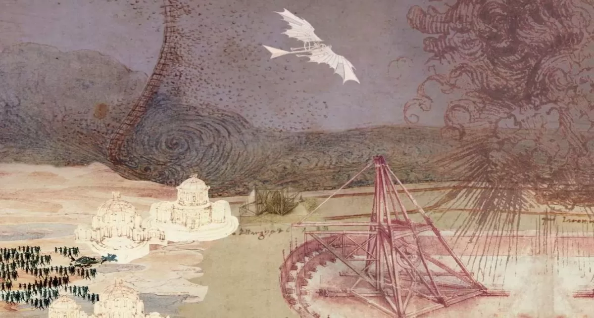 Following these inventions we are guided into the splendor of the natural world, beginning with a gorgeous duet between the clarinet and an animation of da Vinci’s sketches of a bird. The small bird against the lush landscapes represents da Vinci’s obsession with the inter-connectedness of the microcosm and macrocosm. For example, da Vinci compared the “water veins” of the Earth to the blood vessels of the human body. At a fundamental level, da Vinci sought to understand the nature of life, and to him, nature as a whole was alive! His love for nature is captured in his sketches of plants, animals, water, and landscapes, made possible through his finely sharpened sense of observation, remarkable patience, intense concentration, curiosity, and holistic memory.