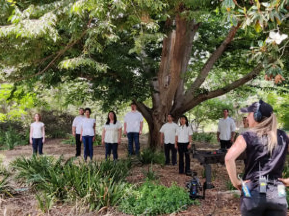 While bringing Tarik O’Regan’s “All Things Common” to arresting visual life for “The Wayfaring Project,” Pacific Chorale and Jeff Dolen Productions managed to visit and film within a broad range of different landscapes in one single day—thanks to the Fullerton Arboretum, which graciously shared its beautiful and diverse gardens with us!