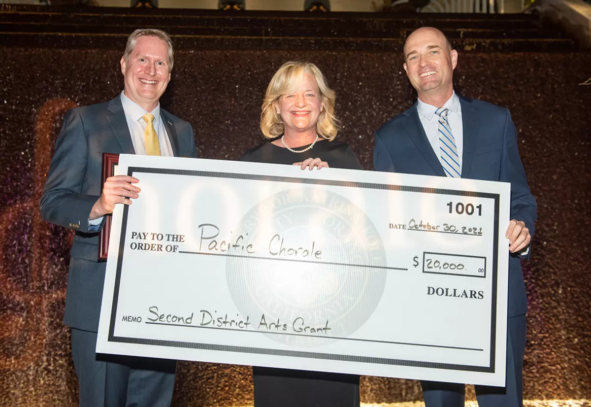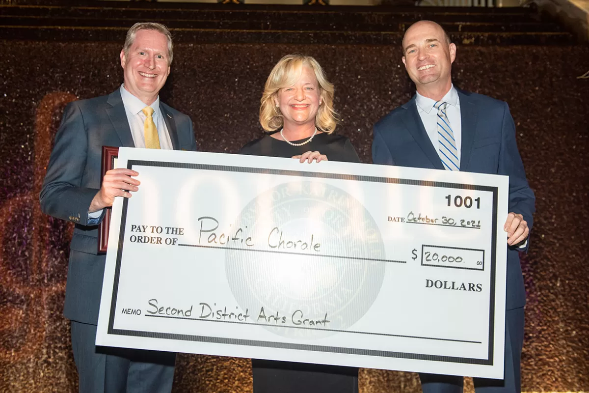 Among the distinguished guests in attendance was Katrina Foley, Orange County Supervisor of District 2 who presented Pacific Chorale with a check for $20,000 from the OC District 2 Arts Related Small Business & Nonprofit Grant Relief Program.
