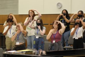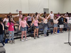 It’s summer, and we are casual! So wear whatever makes you comfortable. Each student will receive a camp t-shirt to wear at the final performance. On Wednesdays, we wear pink — it’s a Choral Camp tradition!