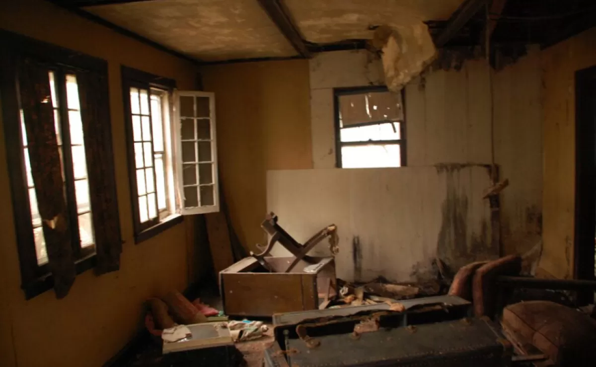 The dilapidated house had a hole in the roof. Many of the Florence Price papers sustained water damage (c) Tim Nutt/UAMS Library Historical Research