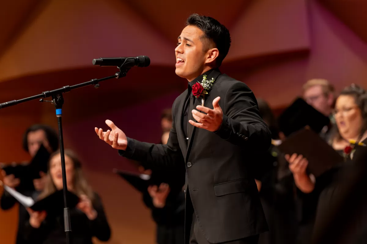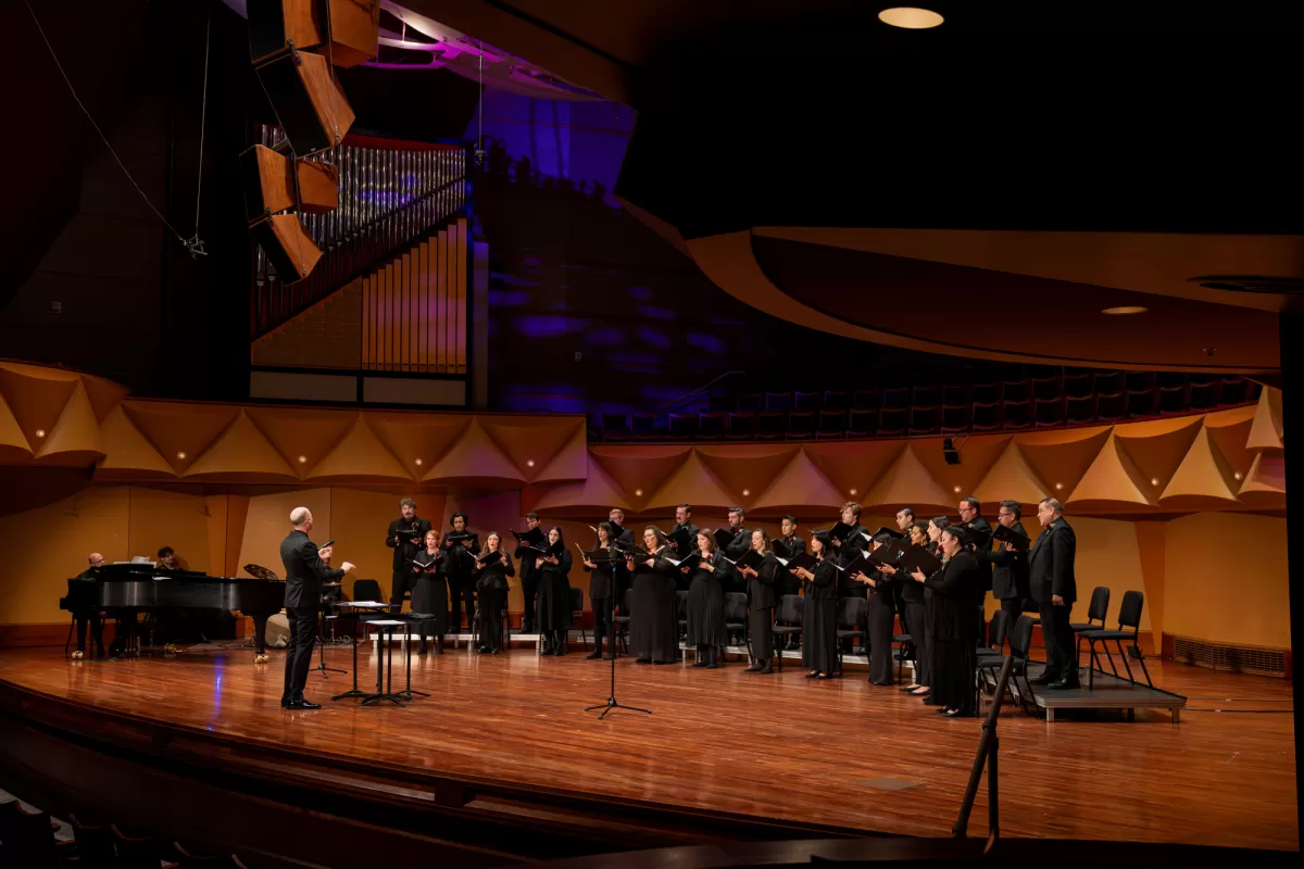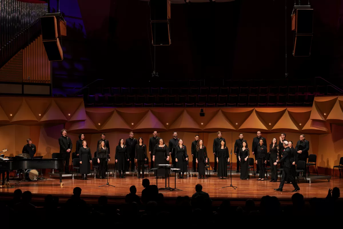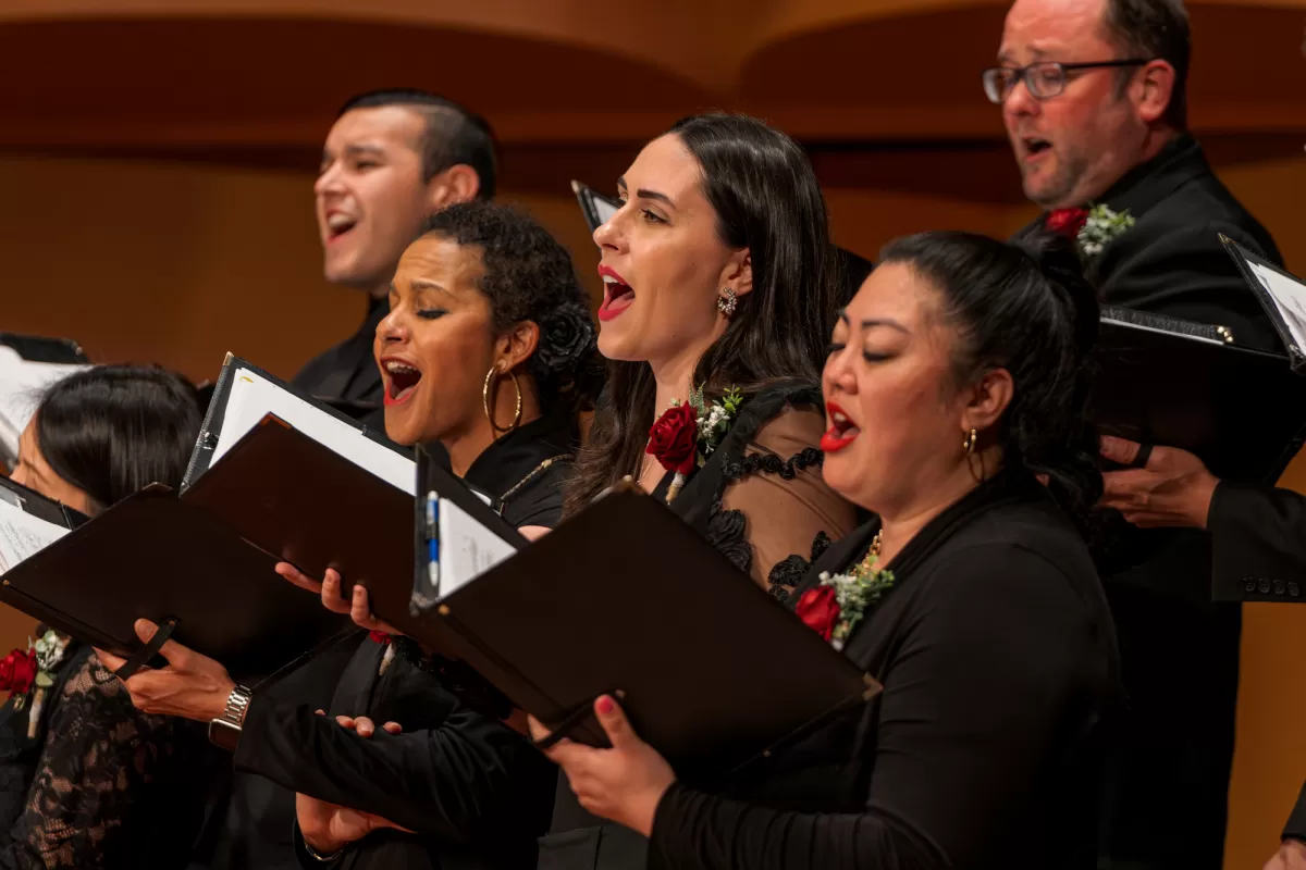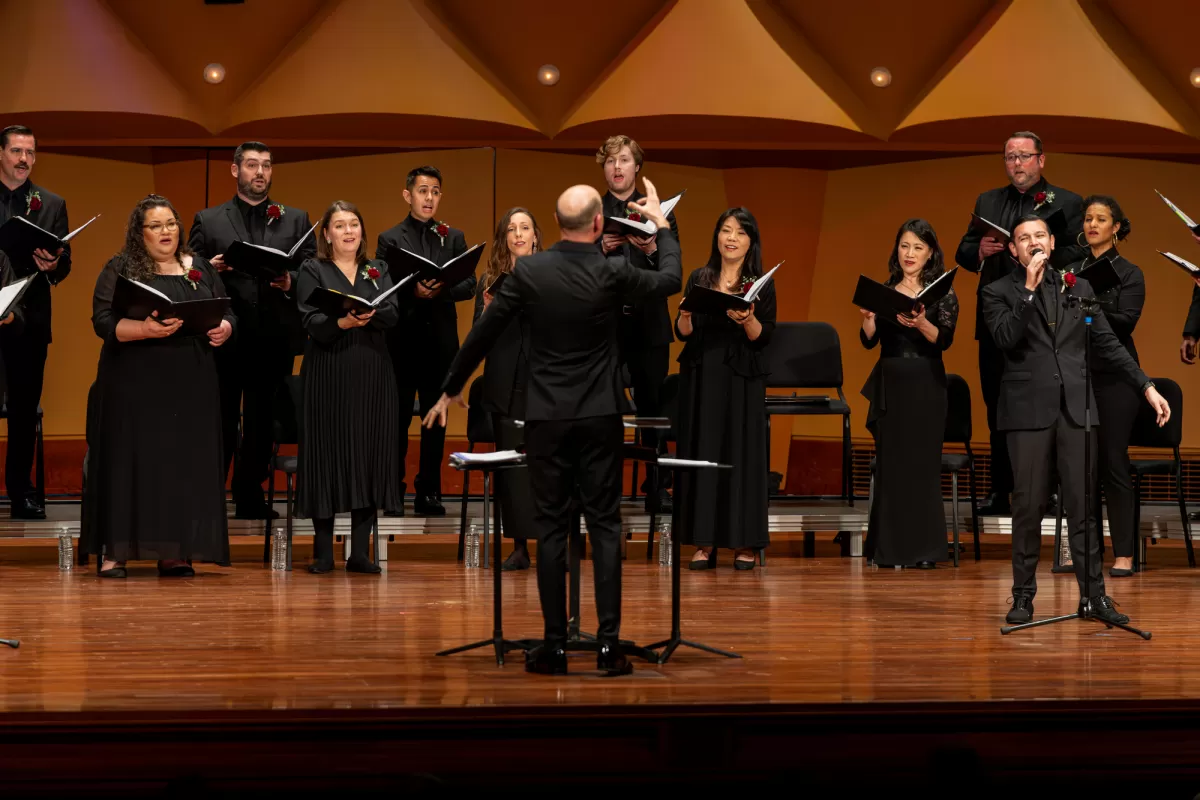 Love was in the air on Saturday, February 24th at Meng Concert Hall on campus at Cal State University, Fullerton! GRAMMY-winning conductor Robert Istad led Pacific Chorale's chamber choir in a program of romantic songs bursting with poetic lyrics, melodic richness, and timeless beauty. Our incredible singers stepped out of the chorus for featured solos that took our breath away. Enjoy some of the highlights below! Learn more about the Language of Love program here.