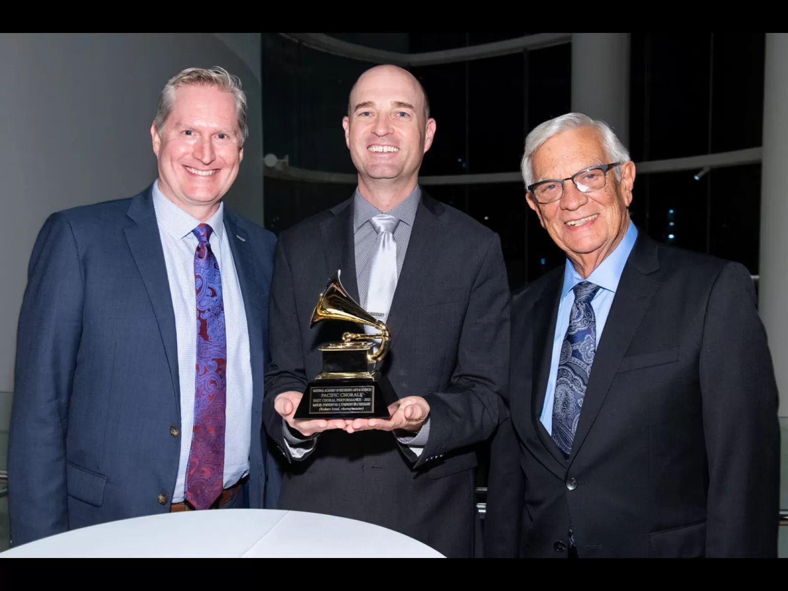 Immediately following Pacific Chorale’s season opening concert was a post-concert reception for our donors on the Box-Circle level of the Concert Hall. High in spirits after such a wonderful concert, we wanted to share a special surprise – our GRAMMY!
